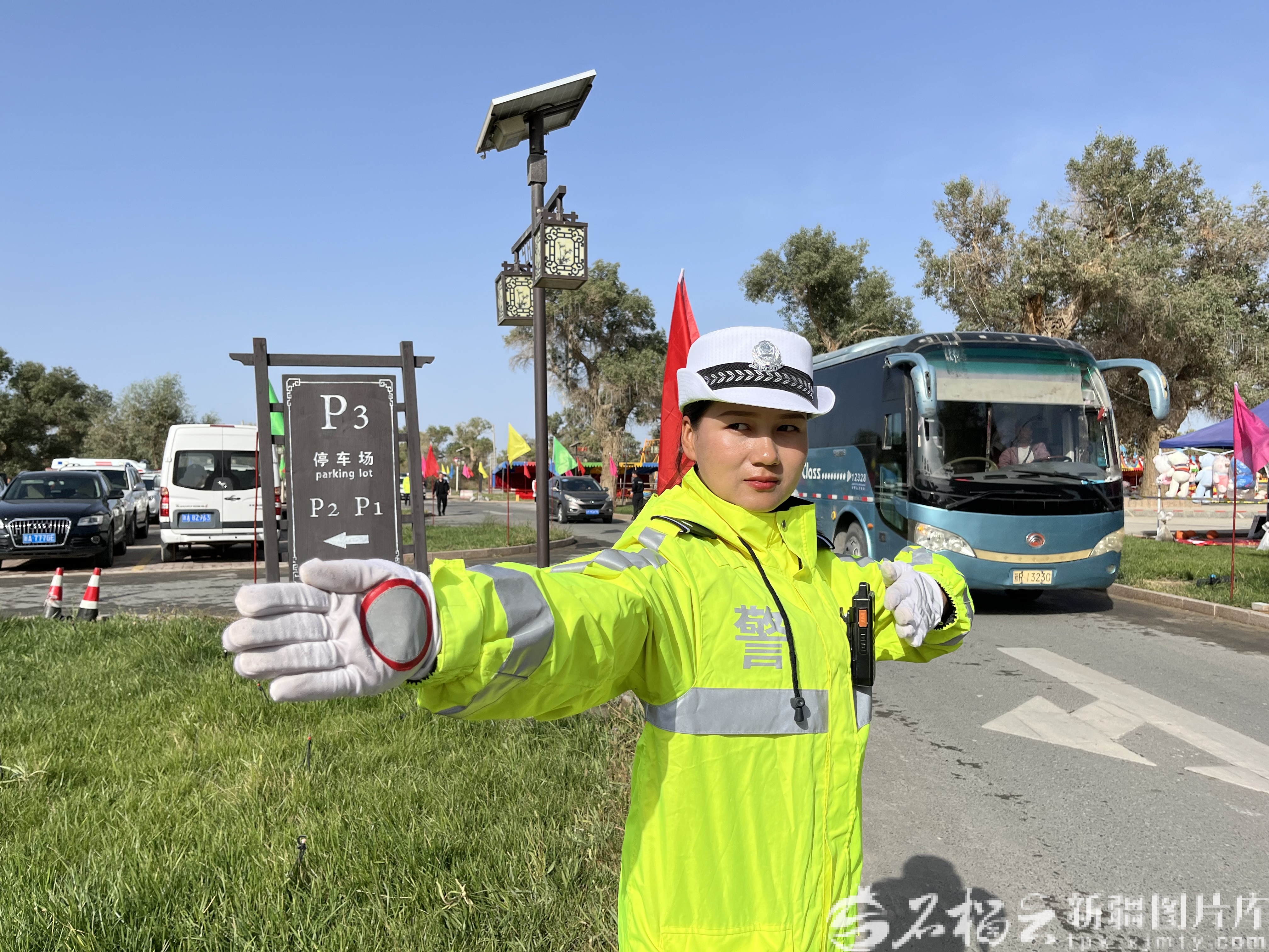 轮台交警护航胡杨季 柔性服务获游客点赞