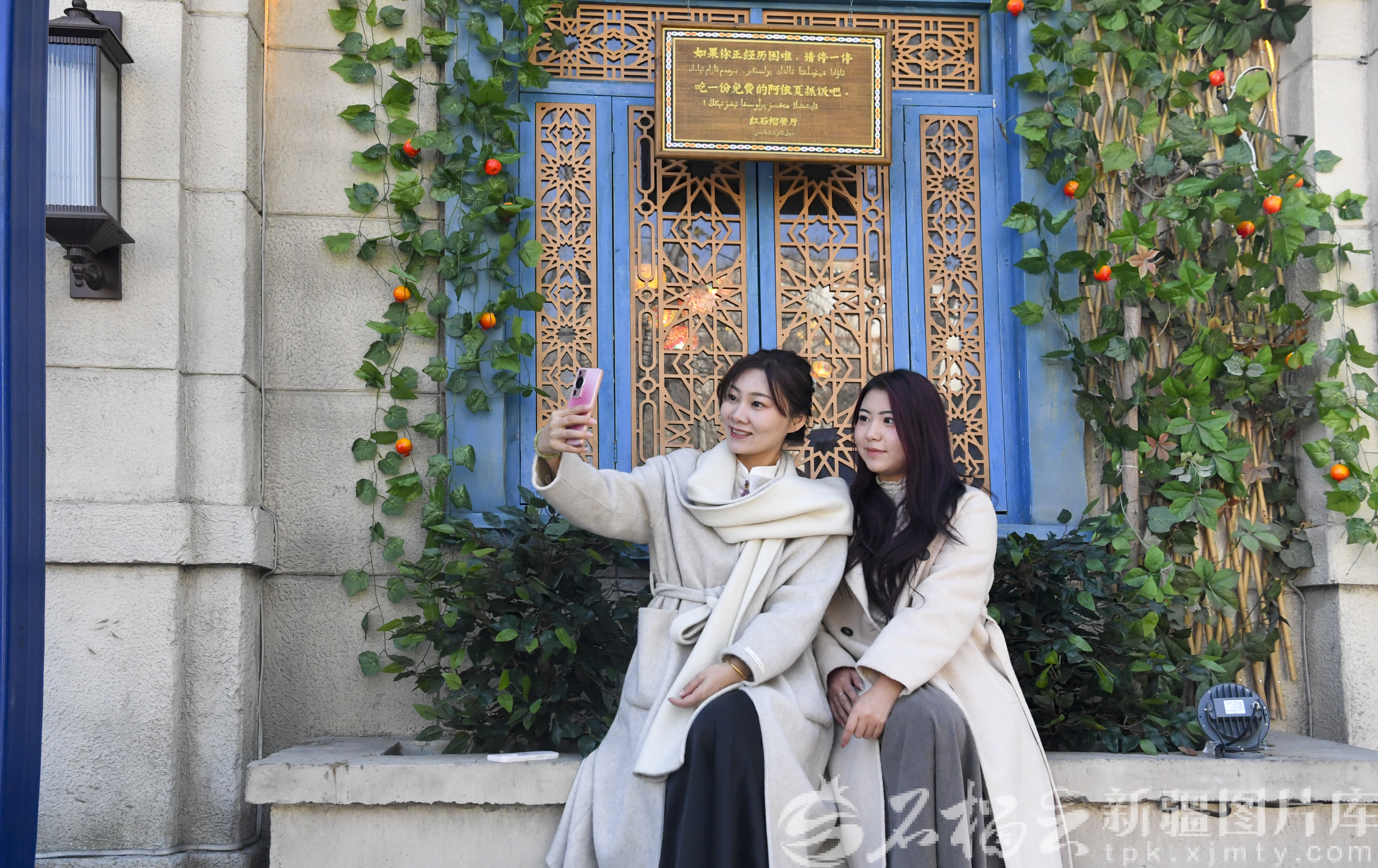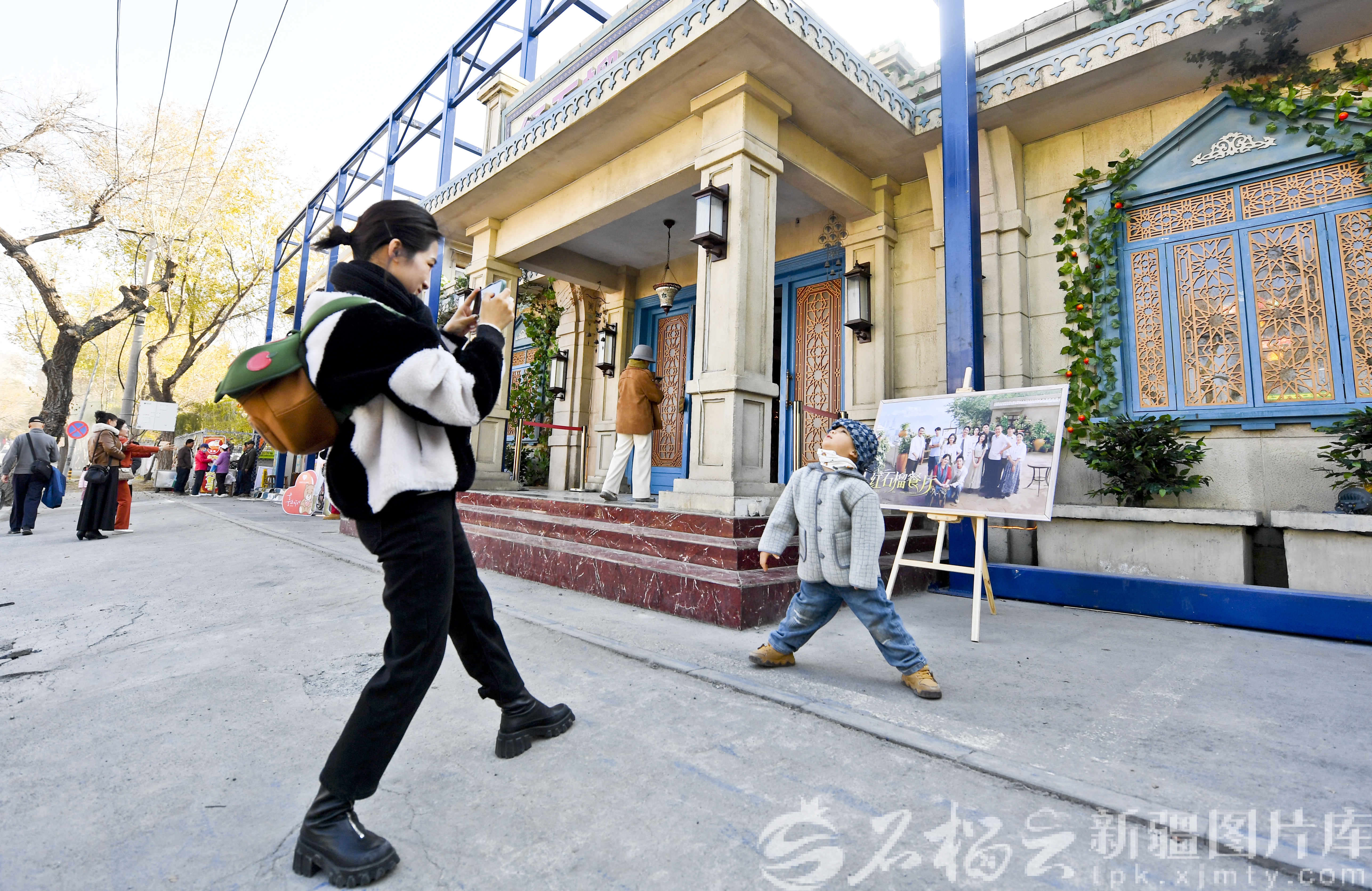 11月2日,游客在《红石榴餐厅》外墙前拍照。