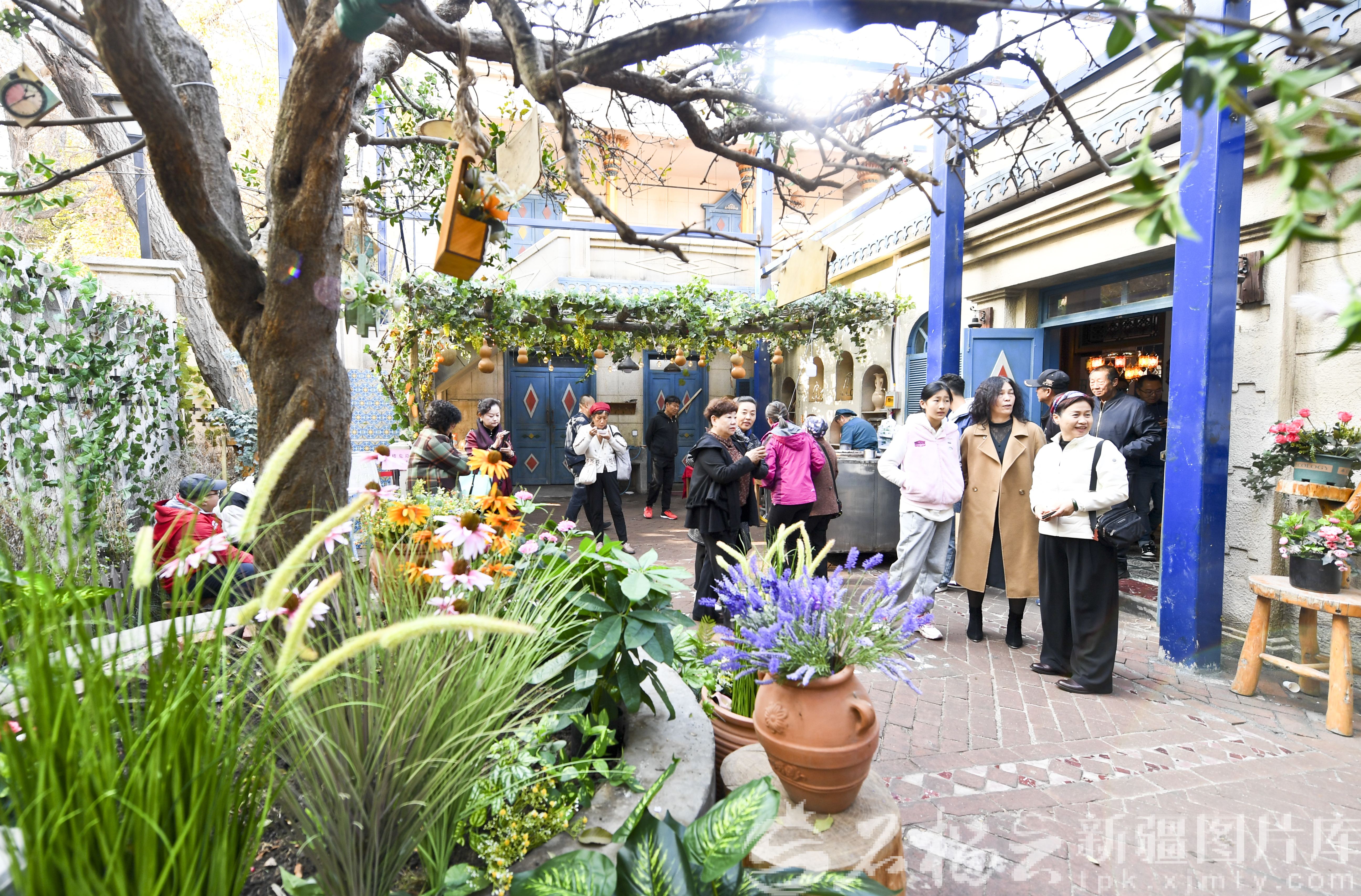 11月2日,游客在《红石榴餐厅》小院里参观。