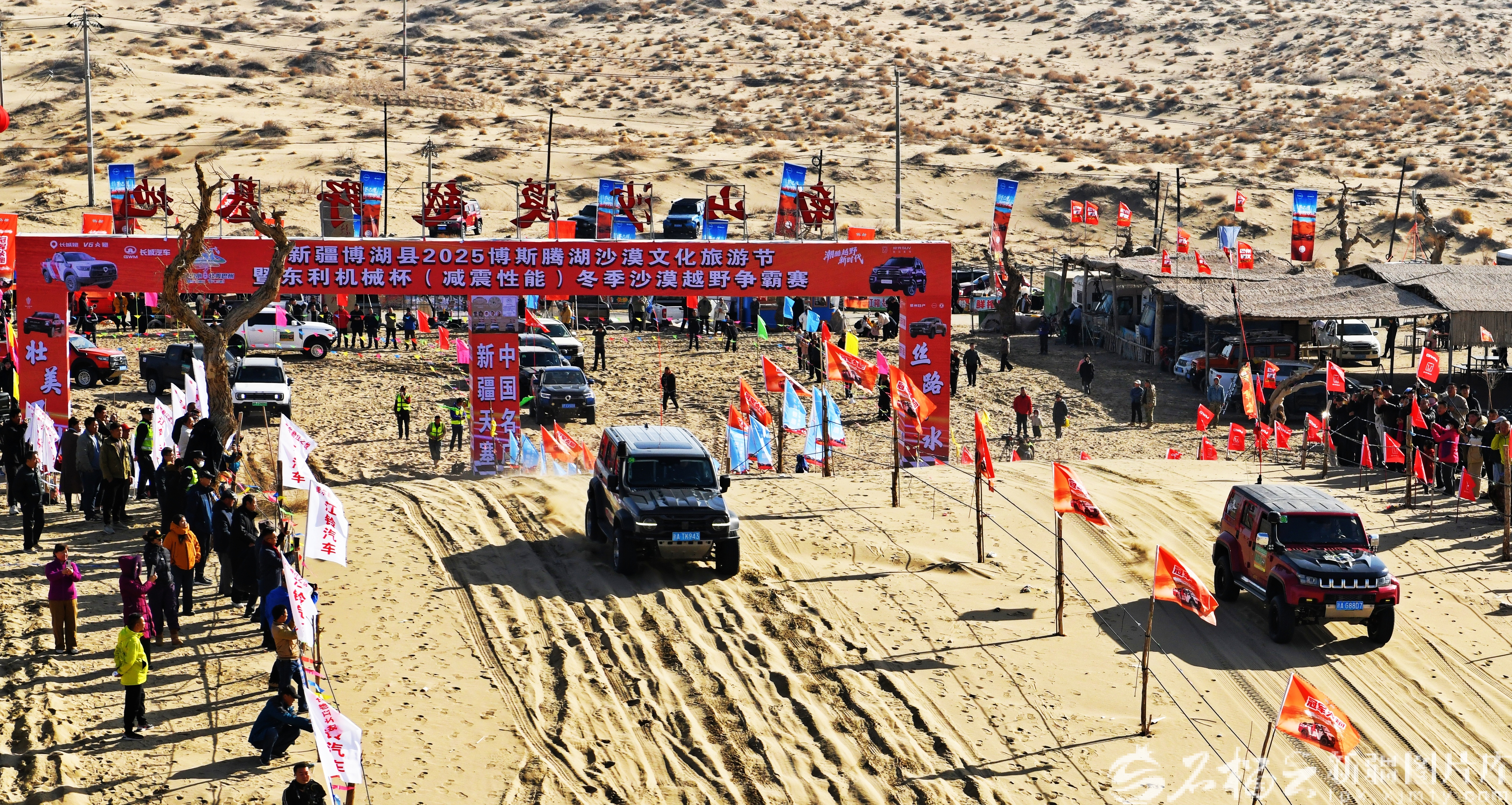 石榴云/新疆日报讯(记者 王立华摄影报道)11月8日,2025博斯腾湖沙漠文化旅游节暨东利机械杯(减震性能)冬季沙漠越野争霸赛在新疆博湖县艾勒逊乌拉沙漠盛大启幕。为期5天的赛事以“沙水共生”为底色,融合体育竞技、沙漠风情与民俗文化,吸引全国各地越野爱好者齐聚金色沙海,上演速度与激情的巅峰对决。