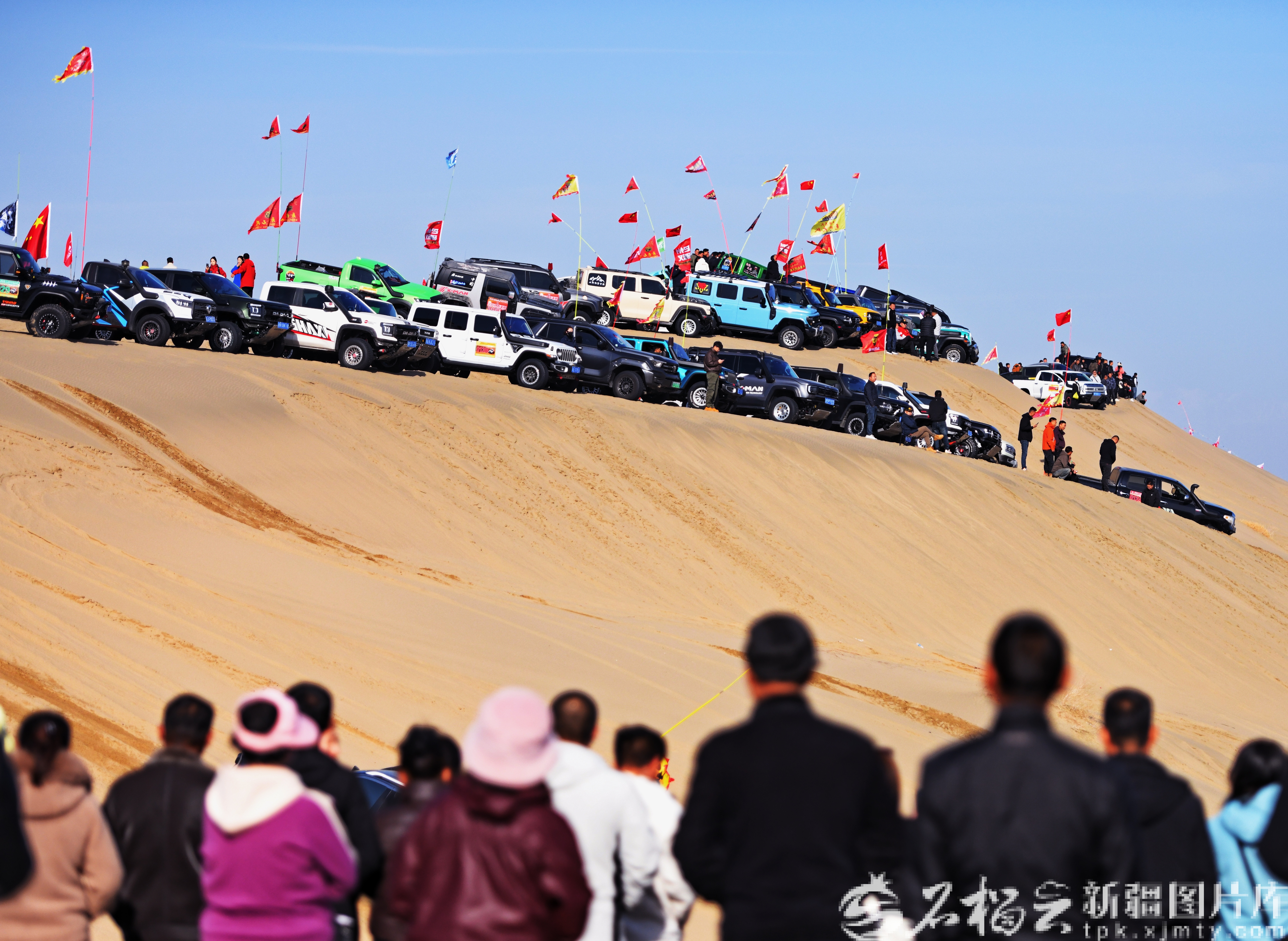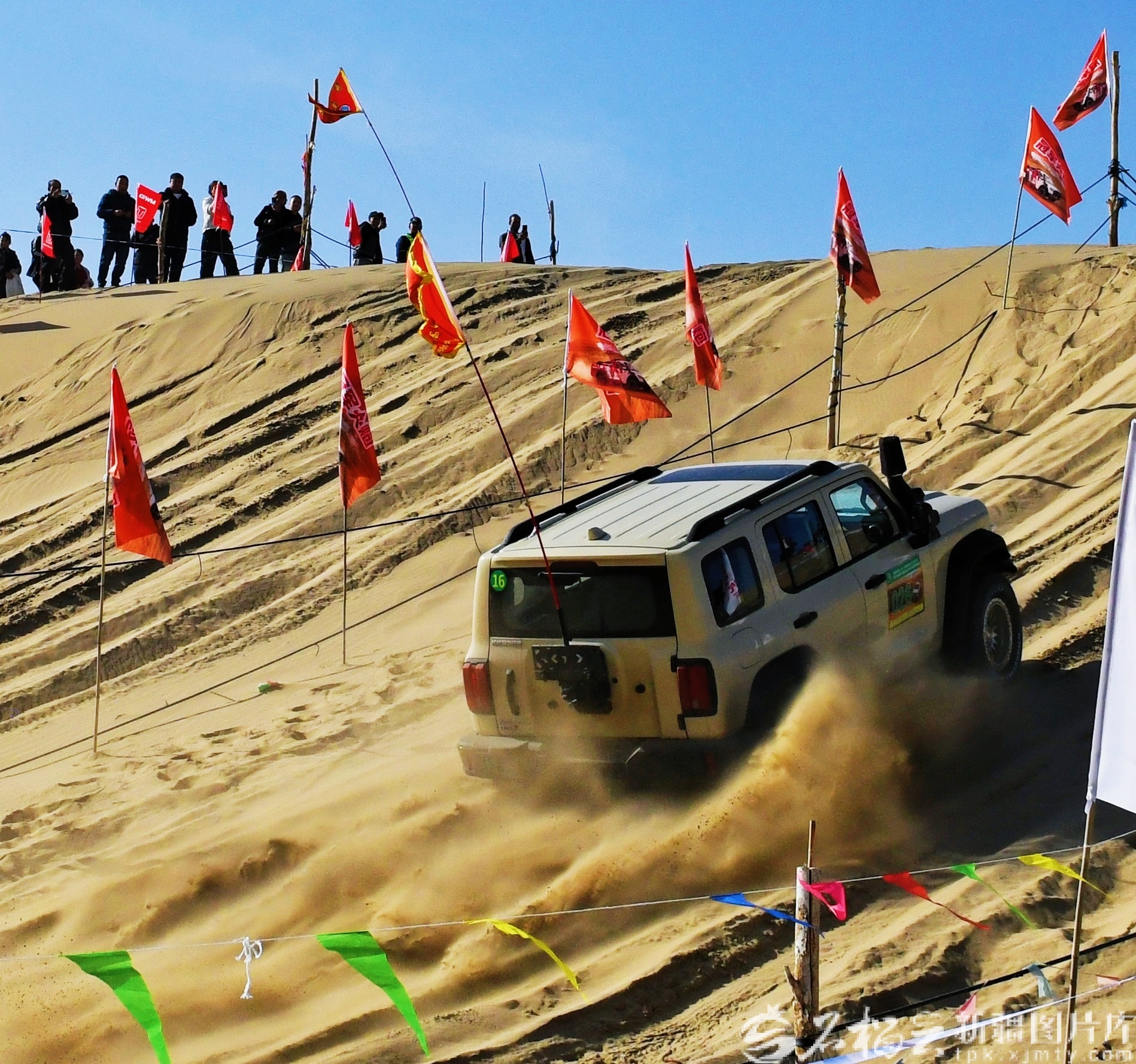 随着发令旗挥下,国产量产组(含新能源)场地赛率先开赛,赛车如离弦之箭冲出起点,车轮卷起漫天黄沙,在蜿蜒赛道上演绎腾跃、漂移与爬坡的惊险瞬间,引得观众阵阵欢呼。
