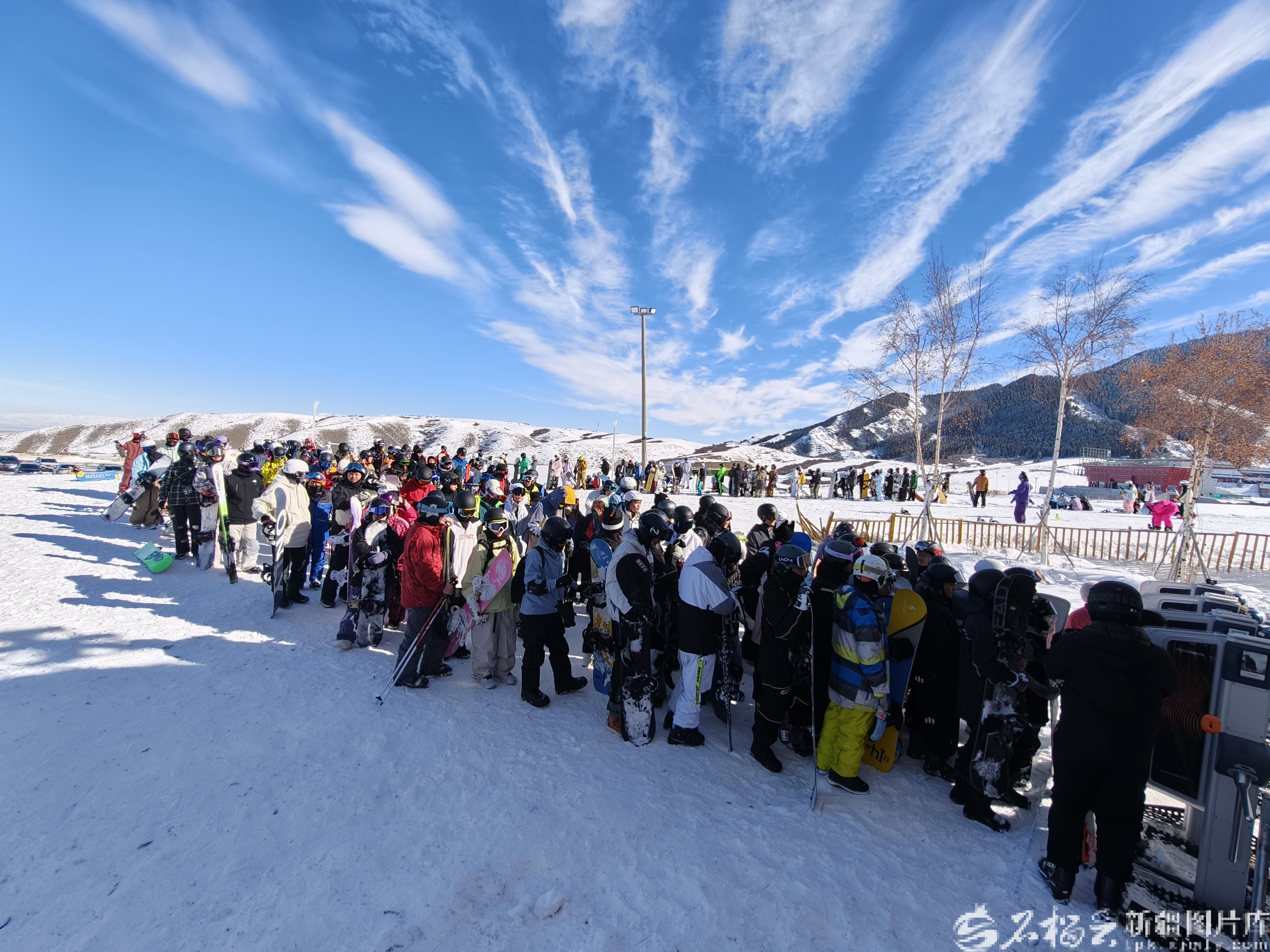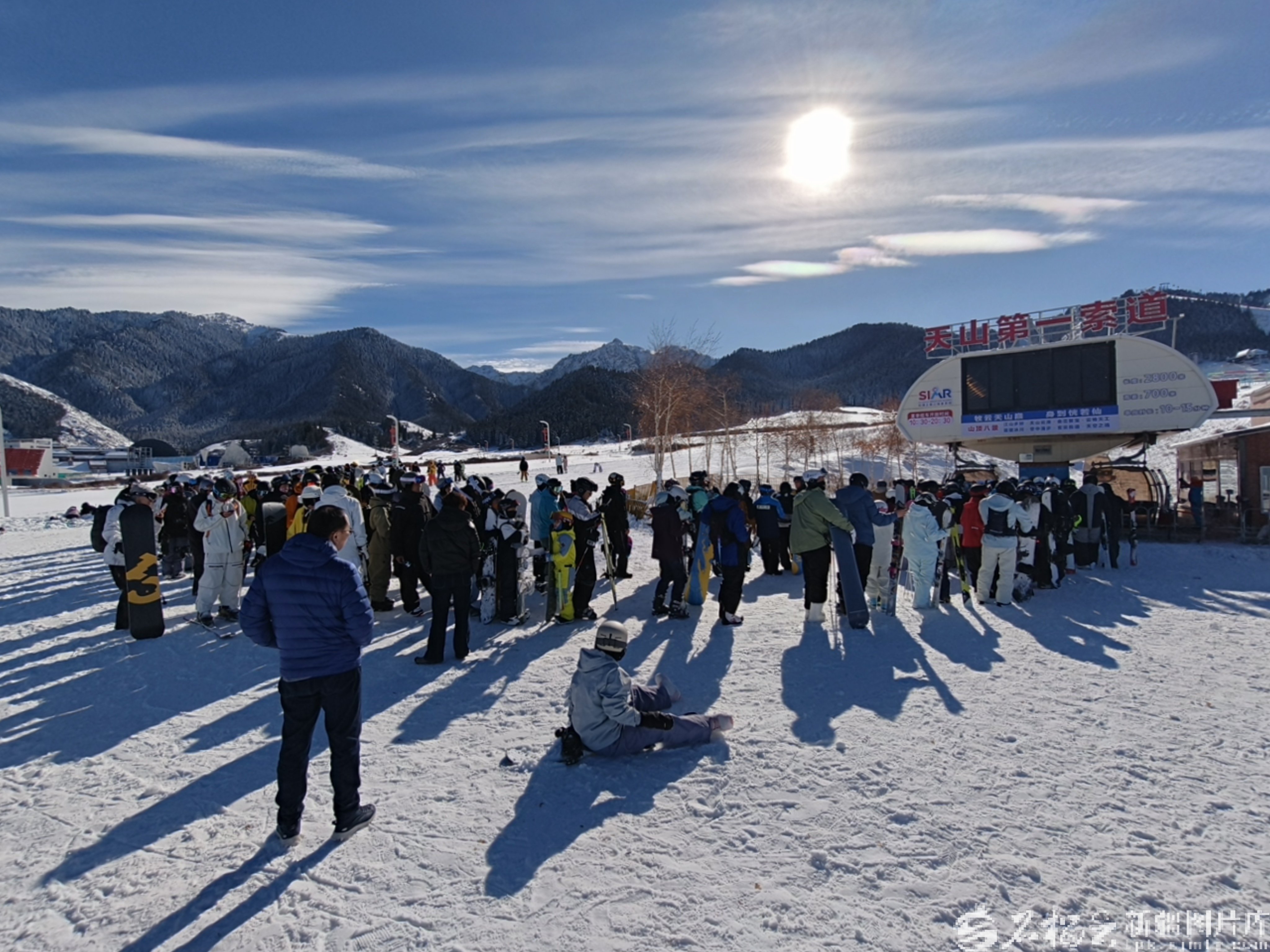 当日9时,度假区门口就已经有顶门滑雪的游客。“终于等到开板了,特别激动,雪质比想象中得要好,发了朋友圈后,疆外朋友都‘眼馋’。”从石河子市专门赶来滑雪的郑铭说。