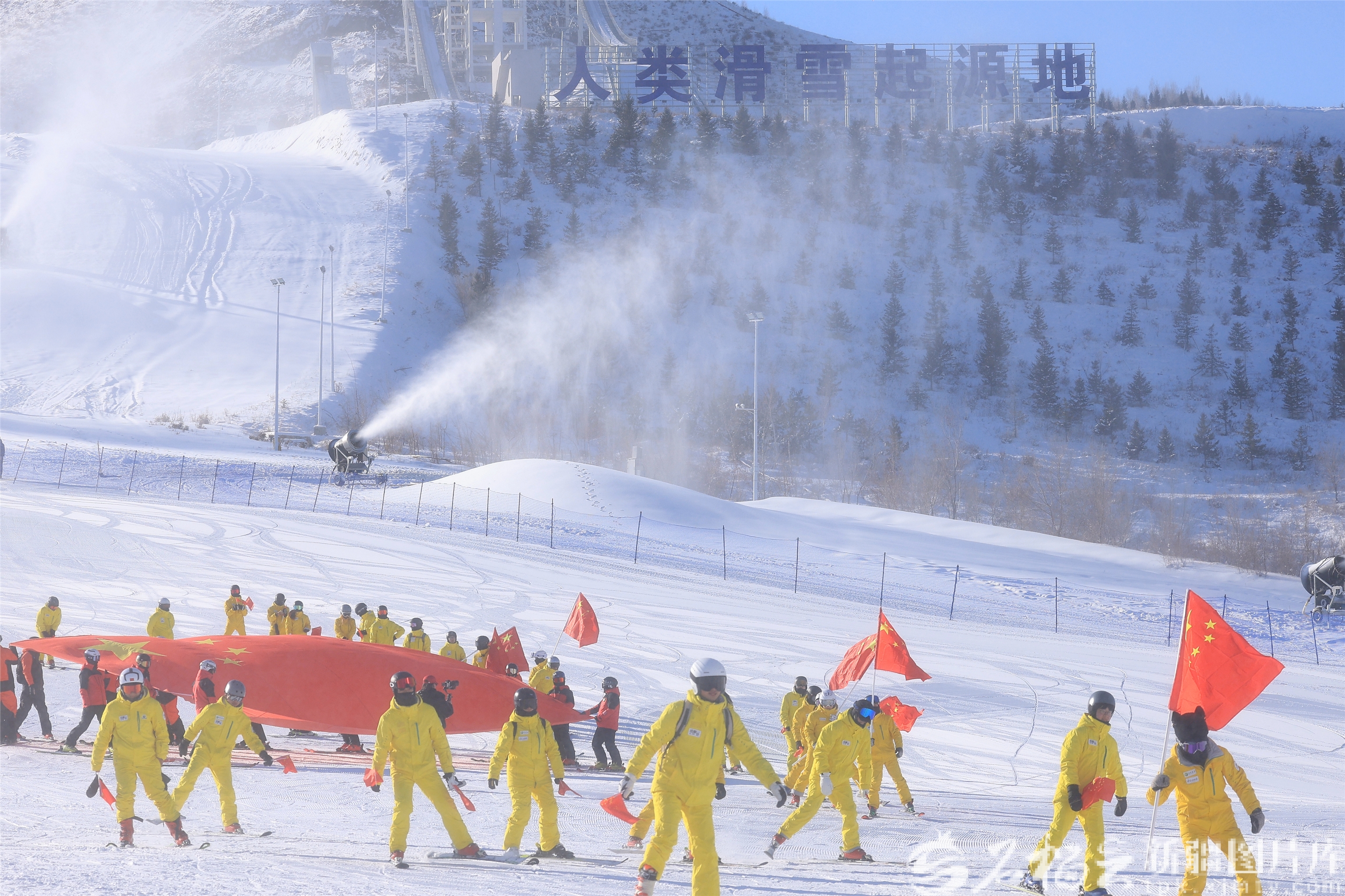 11月18日,雪友在阿勒泰市将军山国际滑雪度假区参加“开板”仪式。阿尔达克·拜斯汗摄