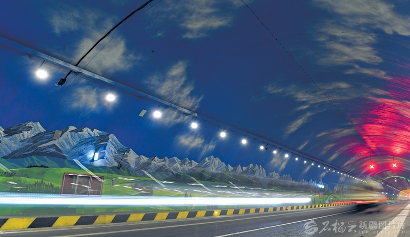 11月13日,施工车辆行驶在乌尉高速公路天山胜利隧道。