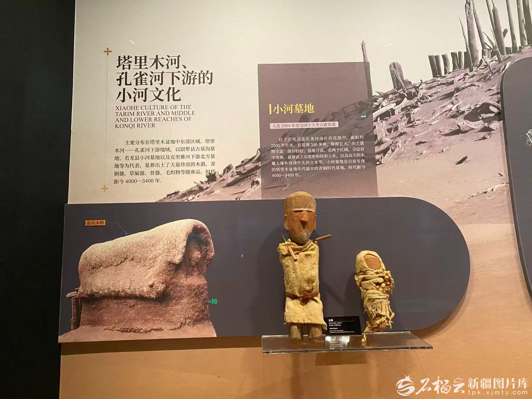 小河墓地位于若羌县孔雀河南部支流小河东侧约4公里处,东距楼兰古城遗址175公里,距今约4000年至3500年,是新疆青铜时代早期墓地之一。2002年至2005年,考古学者在此开展系统发掘,出土了大量珍贵文物及古尸标本,引起了世界各地学者的广泛关注,该考古发掘入选2004年“中国十大考古发现”。