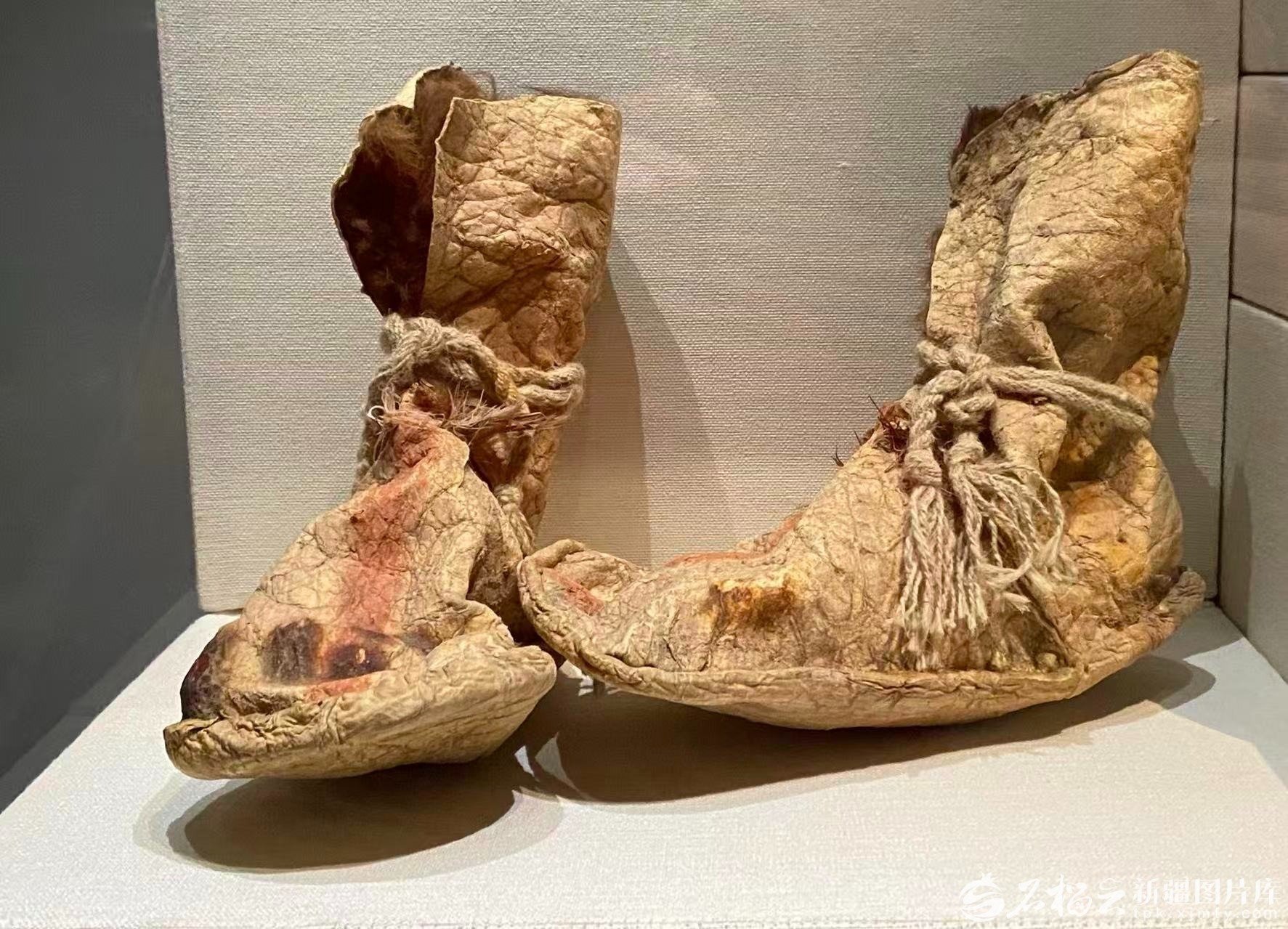 小河墓地出土的皮靴。石榴云/新疆日报记者 赵梅摄