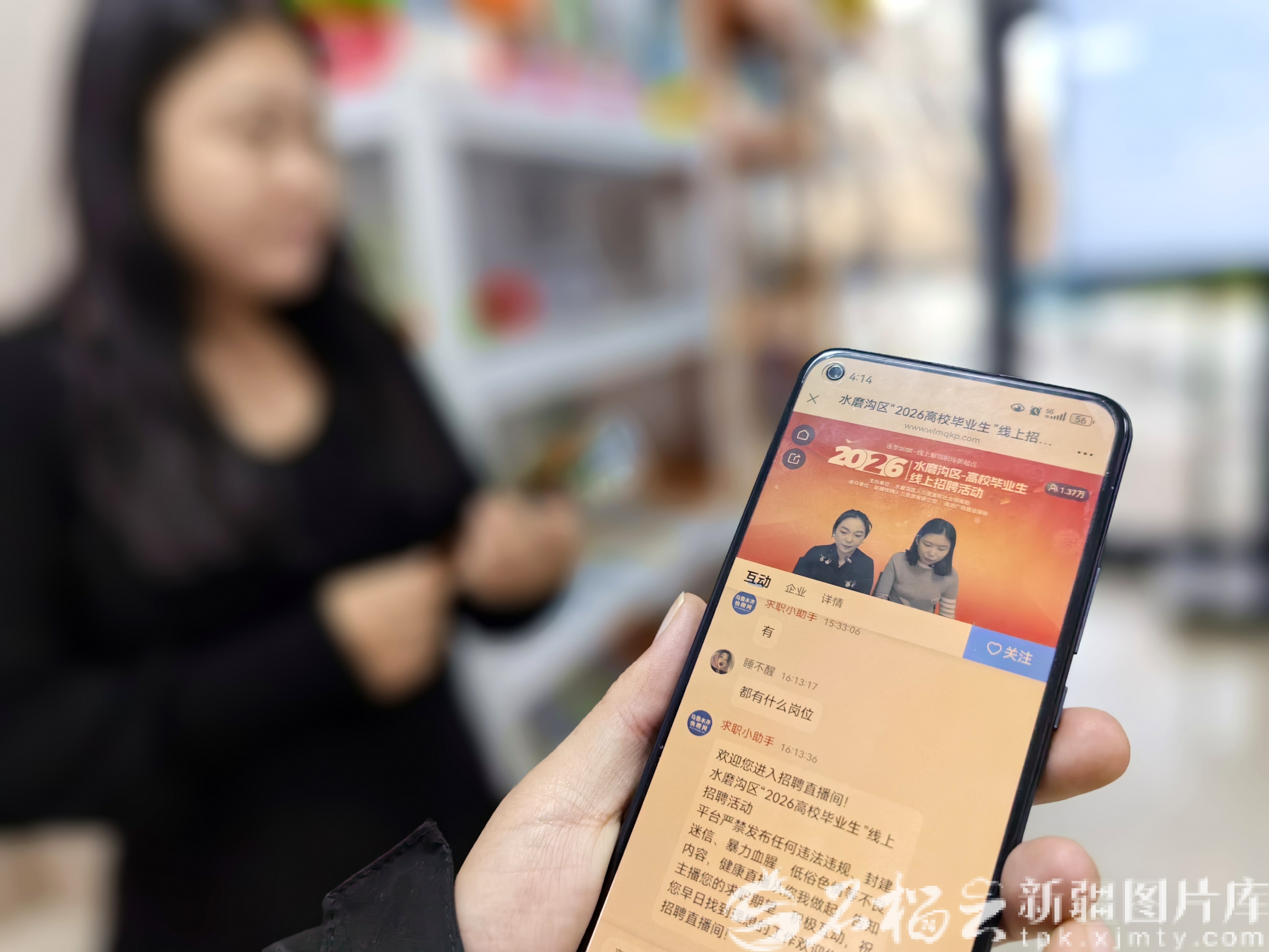 1月6日,求职者在手机上了解水磨沟区“2026届高校毕业生”线上招聘活动。