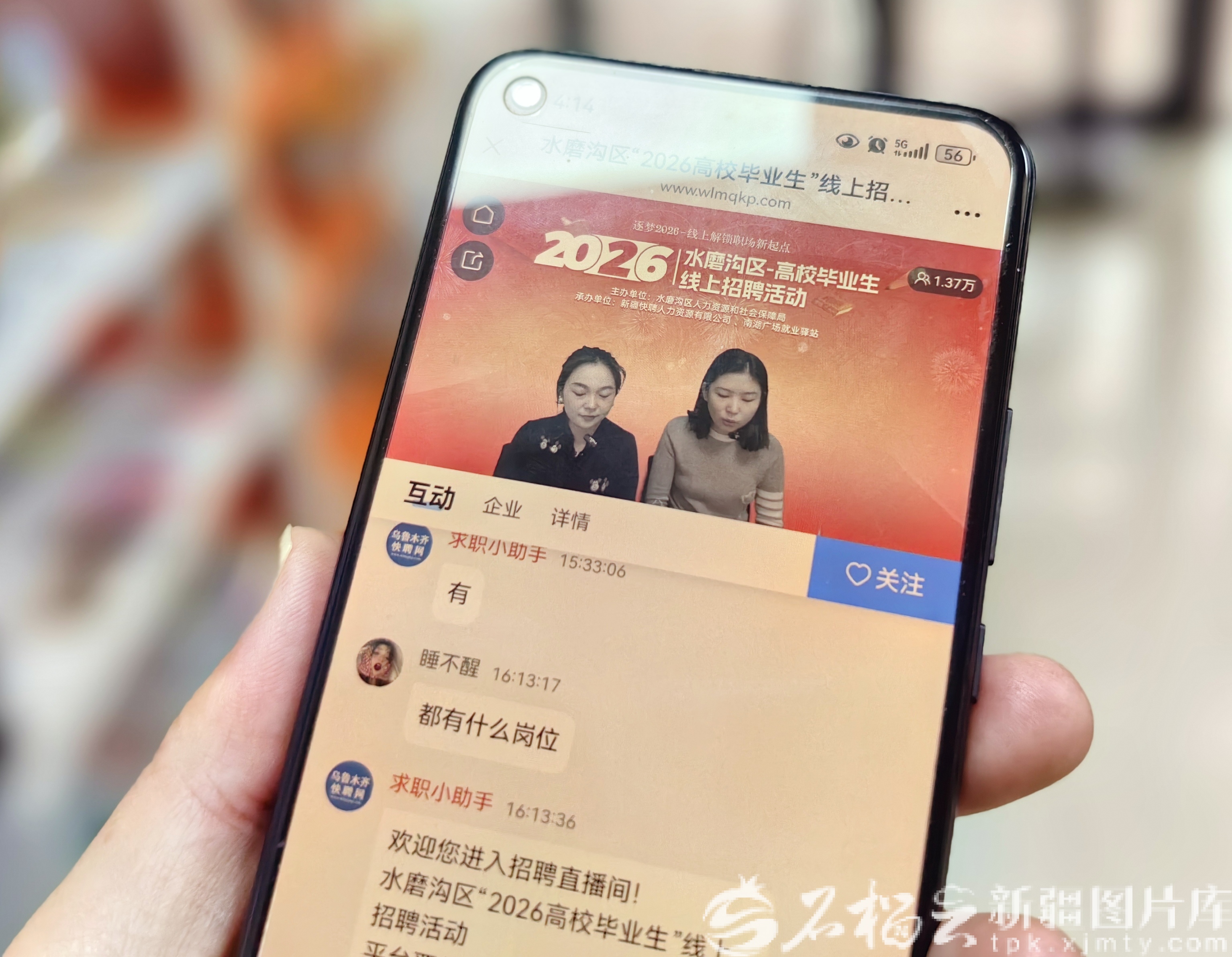 天山网-新疆日报讯(记者李雄心摄影报道)为切实保障高校毕业生春节前就业对接需求,精准搭建青年人才与企业高效对接的“云桥梁”,1月6日,由乌鲁木齐市水磨沟区人力资源和社会保障局主办的2026届高校毕业生线上招聘会,在南湖广场就业驿站正式启动。活动以直播带岗为核心形式,贴合毕业生求职特点,让青年群体足不出户即可精准对接优质岗位资源。