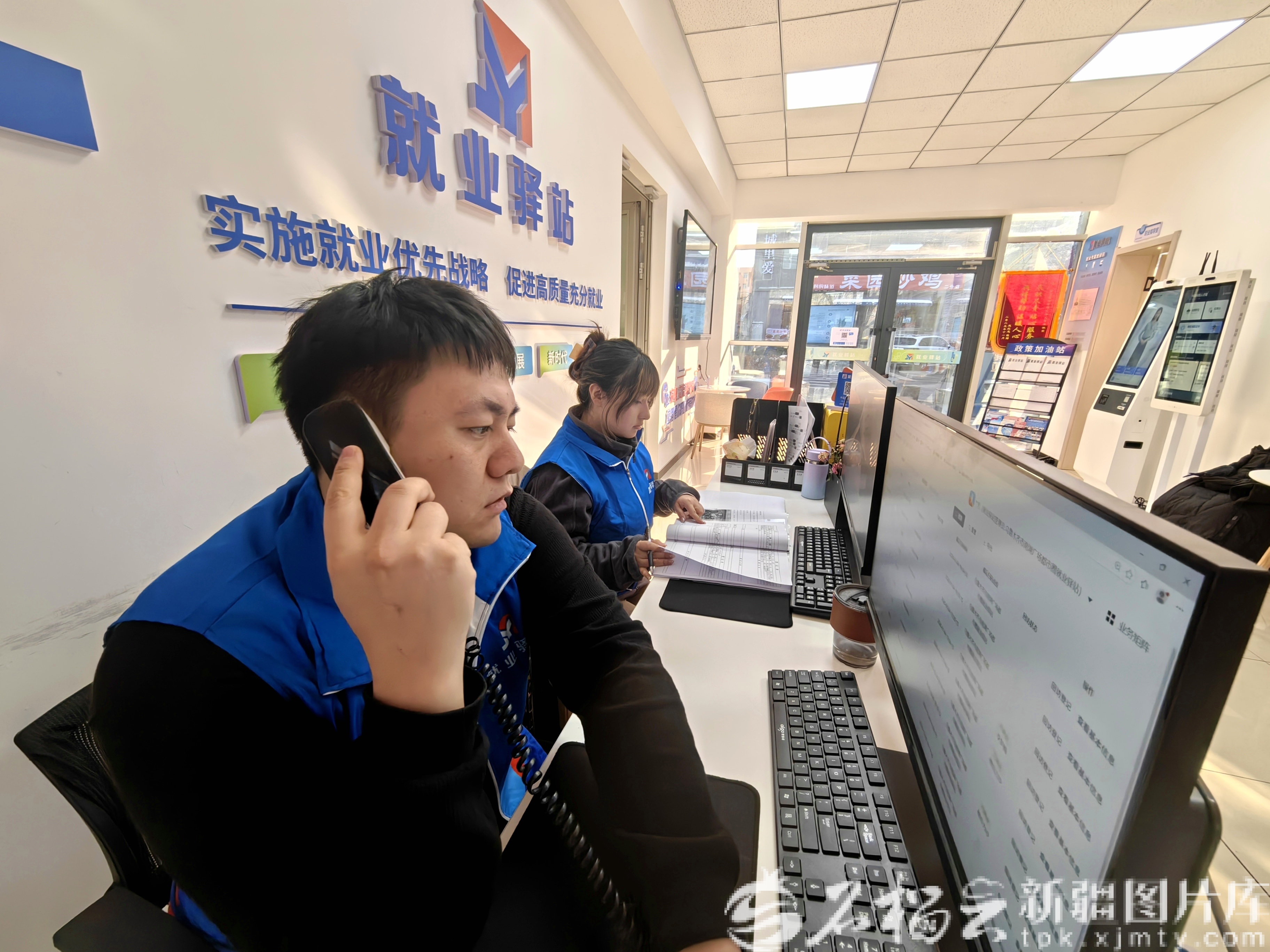 1月6日,在水磨沟区“2026届高校毕业生”线上招聘会现场, 南湖广场就业驿站工作人员在给中国新疆人才网上的求职者拨打回访电话,询问是否找到心仪工作。