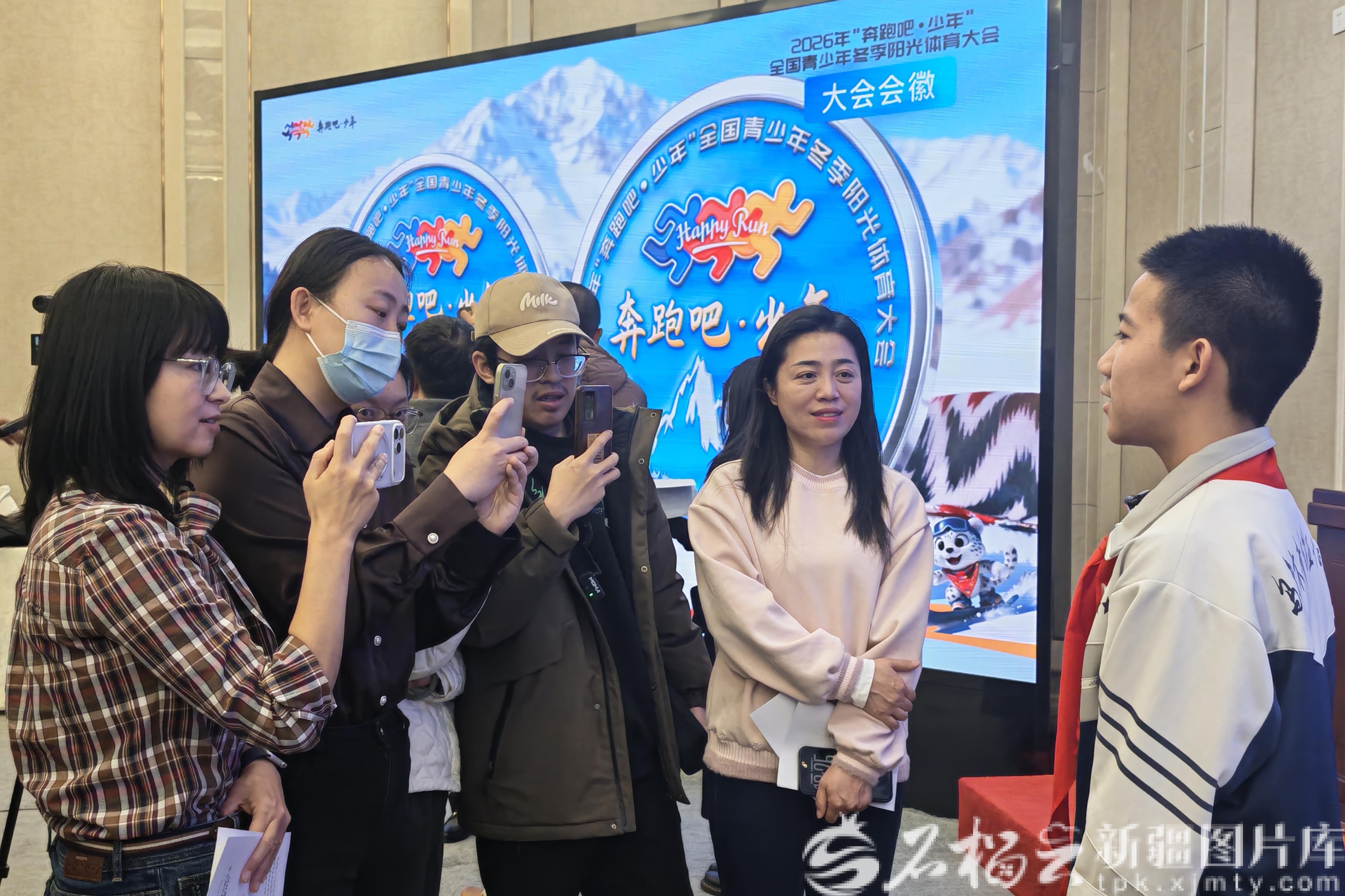 1月8日,2026年“奔跑吧·少年”全国青少年冬季阳光体育大会新闻发布会上,媒体记者在采访学生代表。