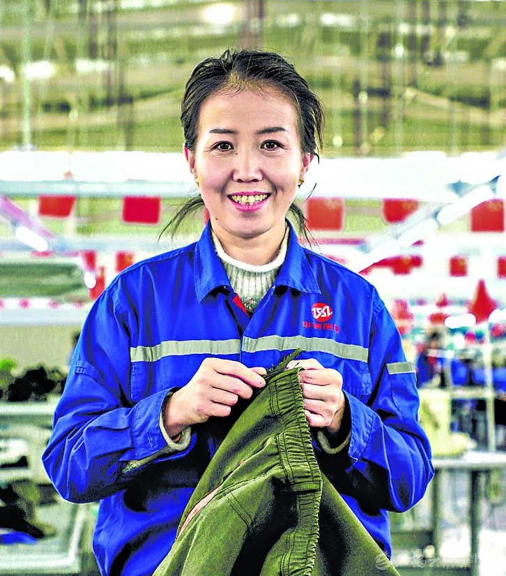 阿合奇县中顺服装厂工人 加哈力·马坎:希望跟着师傅学好缝纫技术,日子越过越红火。□古丽加玛力·艾萨摄