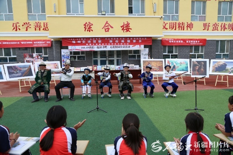 新疆青少年出版社走进阿图什市哈拉峻乡谢依提村小学,开展“唱响史诗赞歌 画出美丽家乡”阅读活动。李鲲摄