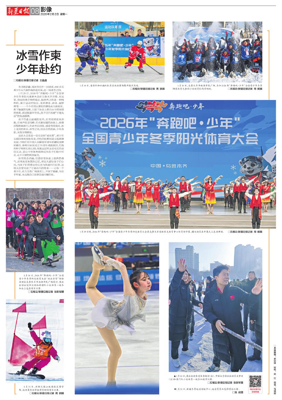 1月29日,2026年“奔跑吧·少年”全国青少年冬季阳光体育大会在乌鲁木齐开幕。在这里,竞技的锋芒悄然褪去,取而代之的是一种纯粹的、属于运动的快乐。花样滑冰、冰球、越野滑雪……一个个项目从紧张的赛场走入体验区,卸下输赢的包袱,只留下冰面上的自由与雪地里的欢笑。在这场嘉年华里,孩子们不再被“不能失误”的焦虑捆绑。