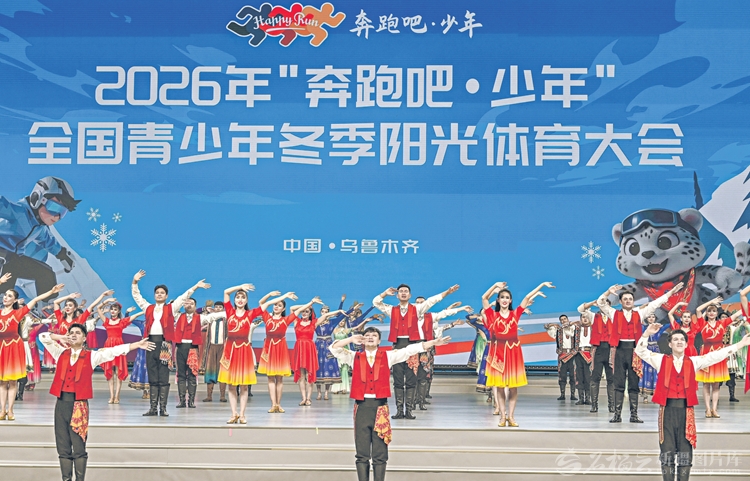 1月29日晚,2026年“奔跑吧·少年”全国青少年冬季阳光体育大会在乌鲁木齐奥林匹克体育中心体育馆开幕。图为演员在开幕式上表演舞蹈。石榴云/新疆日报记者 周鹏摄