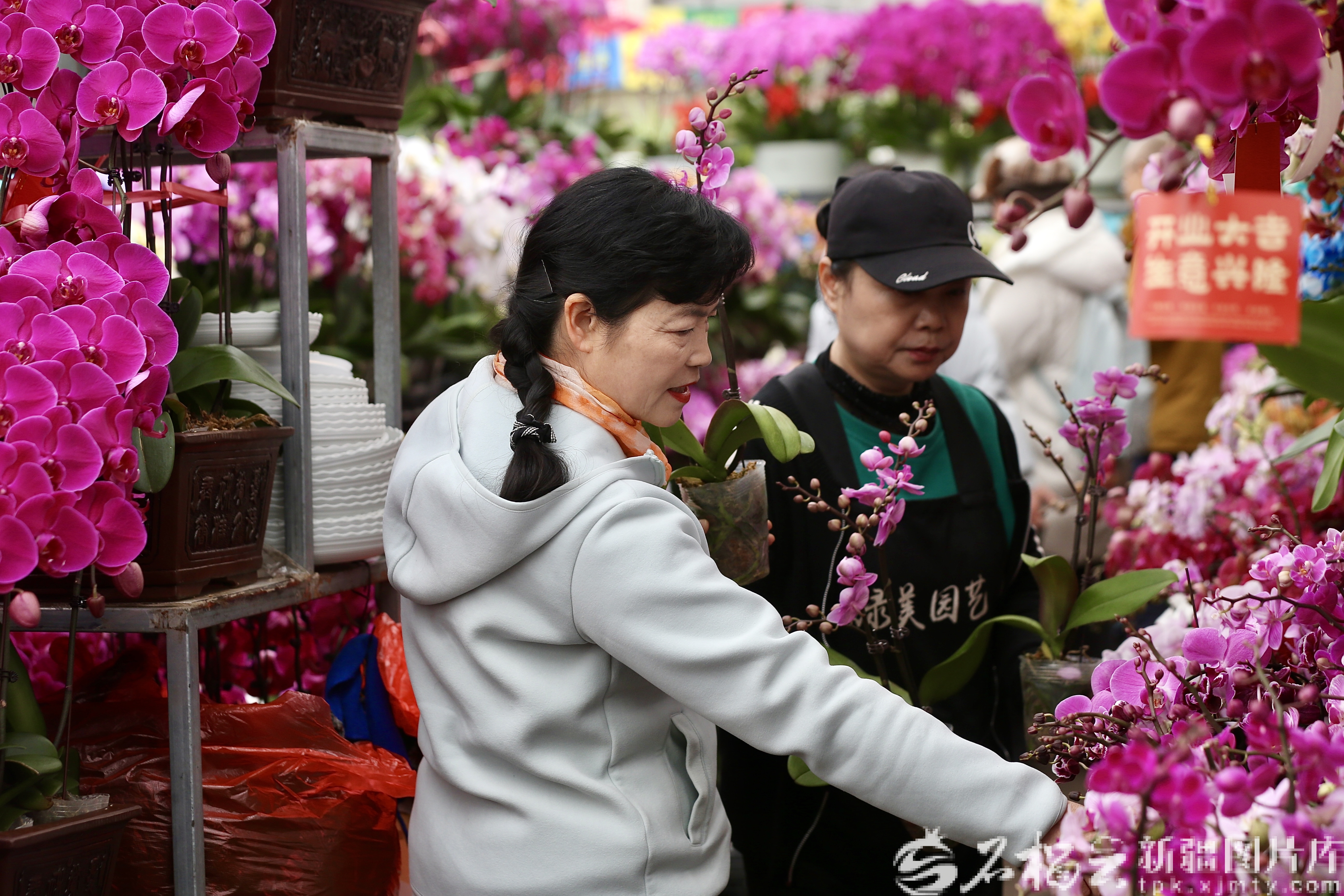2月10日,市民在新疆明珠花卉市场选购鲜花。