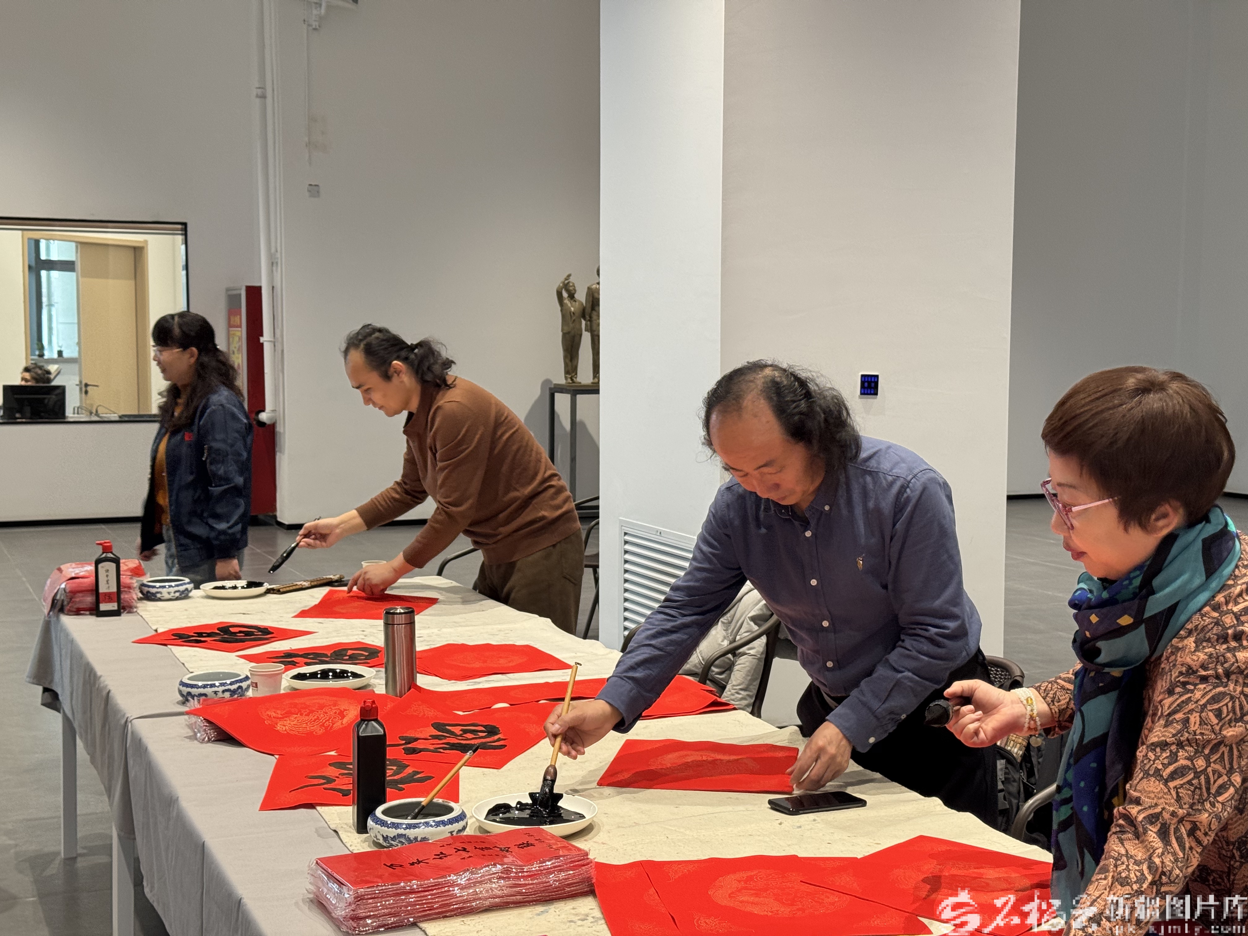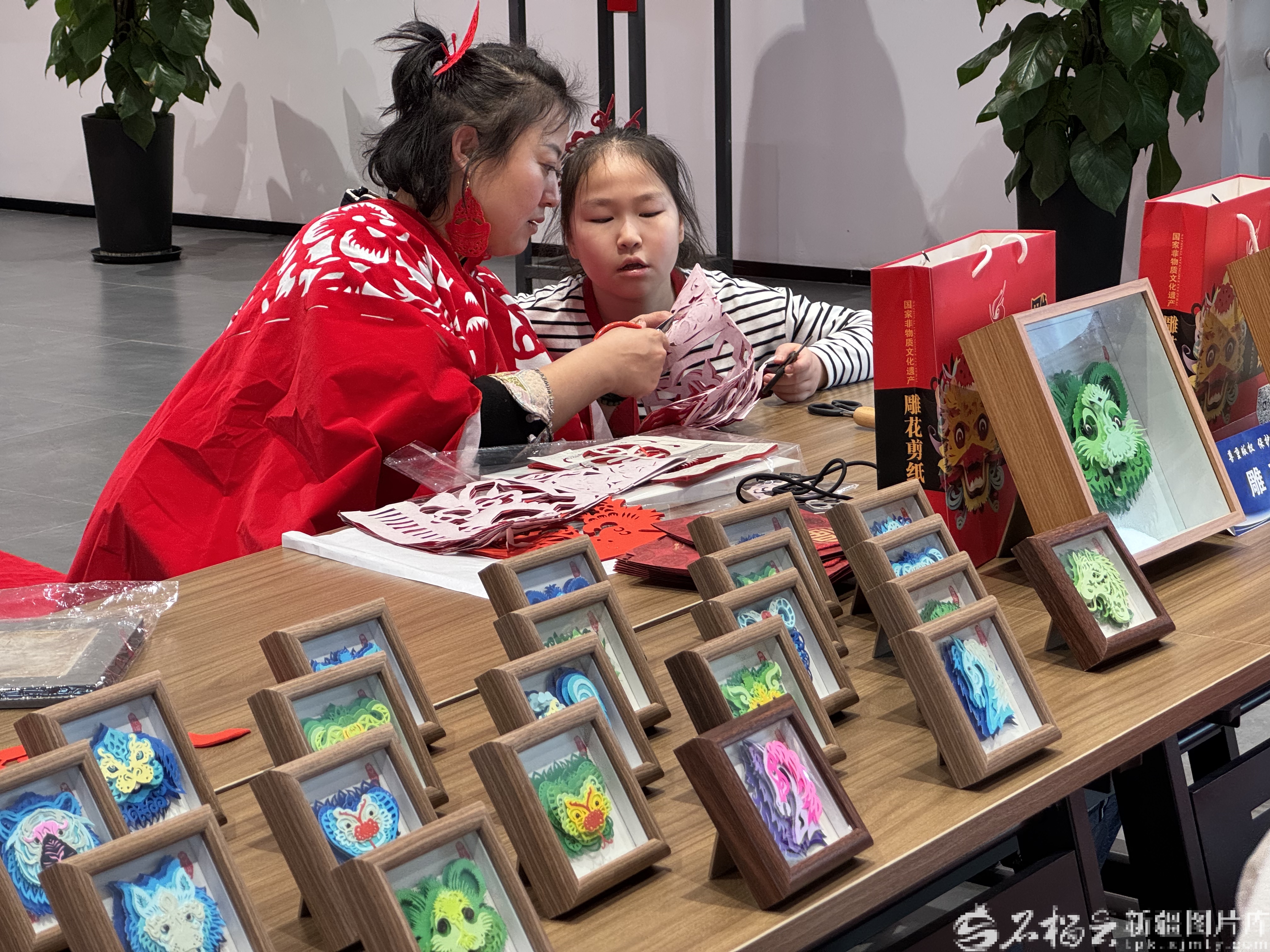 展览现场还设置互动体验区。书法家们挥毫泼墨,为观众免费书写春联、“福”字。剪纸艺人手把手教授窗花制作,吸引众多市民参与。市民王俊生领到一副“骏马奔腾迎新岁,春风送暖满天山”的春联后欣喜地说:“欣赏了高水平的艺术作品,还能带着春联带回家,孩子也在旁边学剪纸,年味特别浓。”
