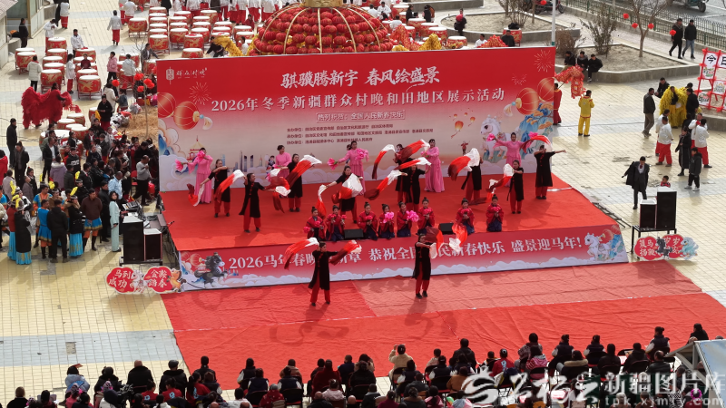 2月10日,以“骐骥腾新宇 春风绘盛景”为主题的2026年冬季新疆群众村晚和田地区展示活动在洛浦县杭桂镇顺利举办。王鑫 摄