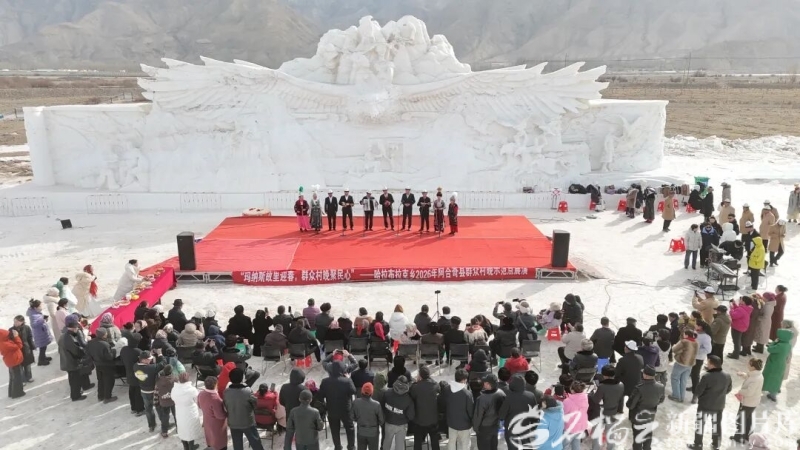 2月3日,阿合奇县冰雪乐园内暖流涌动,“玛纳斯故里迎春,群众村晚聚民心”——哈拉布拉克乡2026年阿合奇县群众村晚示范点展演活动热闹开场。苏云巴依·吐尔逊那力 摄