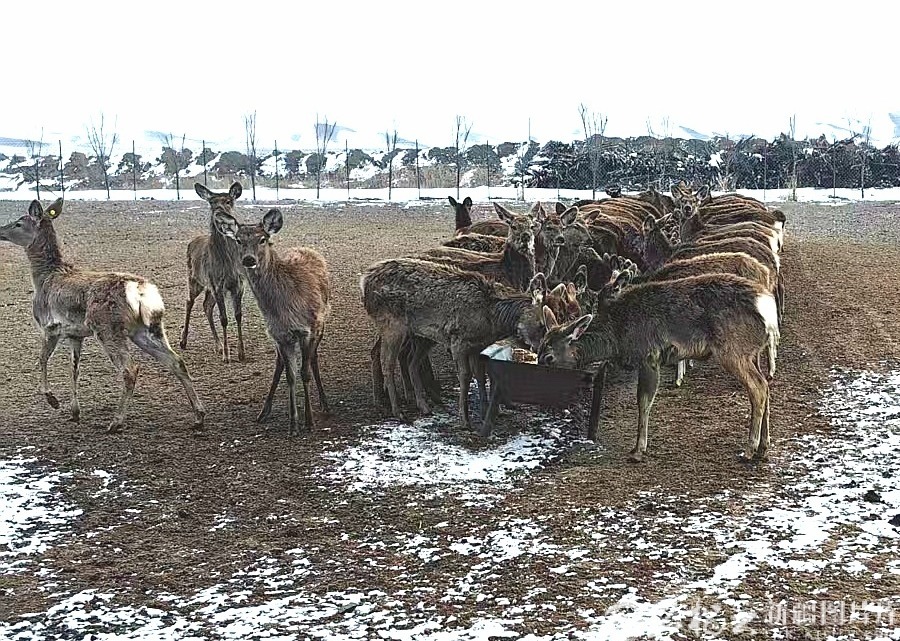 养殖基地里的梅花鹿正在进食。天山网-新疆日报记者 曹华摄
