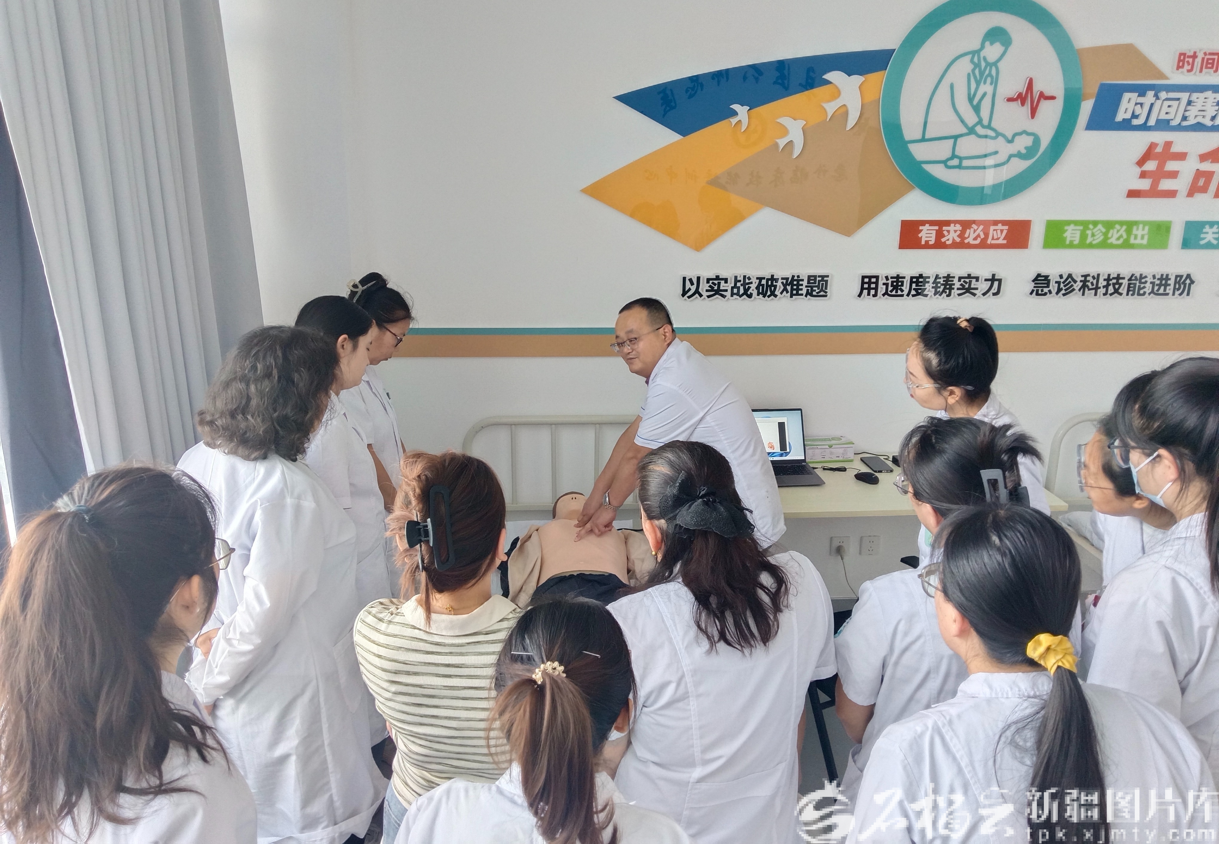 轮台县医共体总医院开展急诊急救技能培训,增强医共体各成员单位临床医生的急救意识与技能(资料图)。