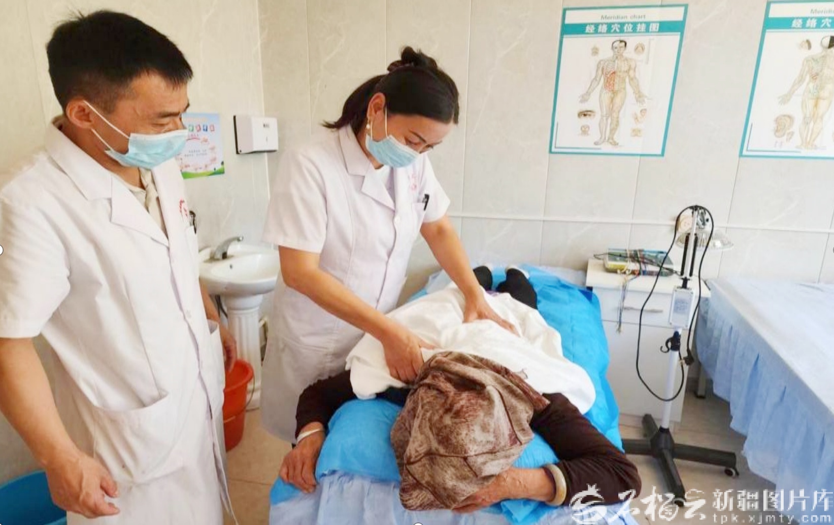 尼勒克县加哈乌拉斯台乡卫生院中医馆,中医师为患者治疗(资料图)。