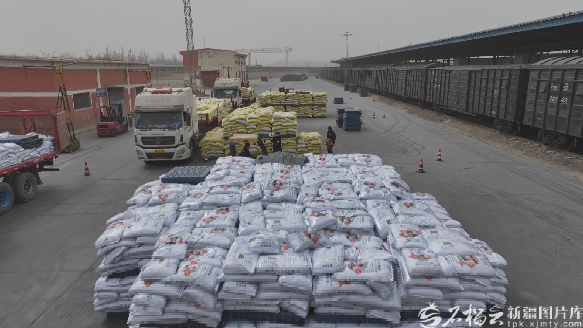 阿克苏铁路货场内堆放的化肥。刘兵兵摄