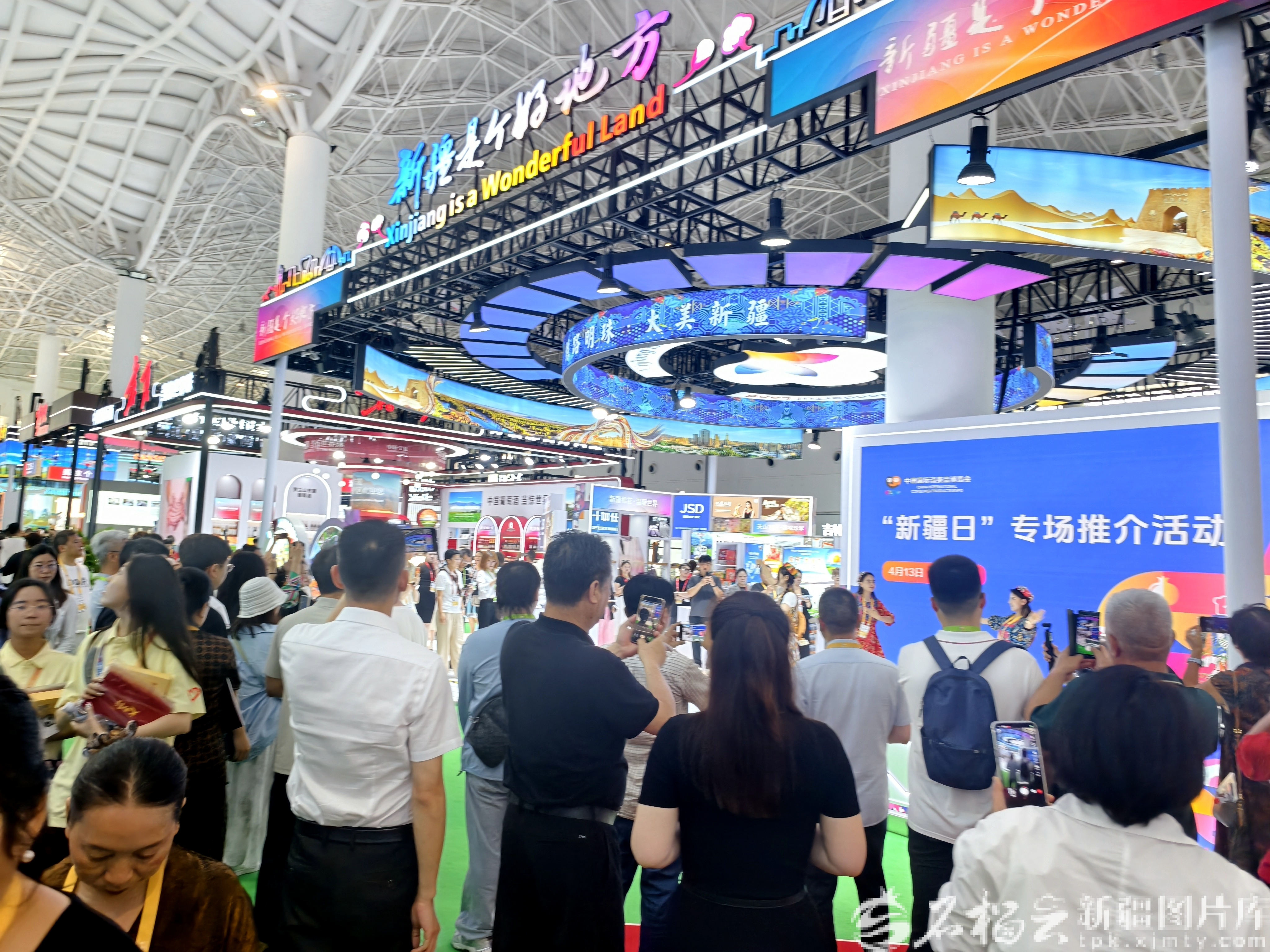4月13日,新疆交易团同步举办“新疆日”专场推介活动,吸引不少客商驻足。天山网-新疆日报记者 黑宏伟摄