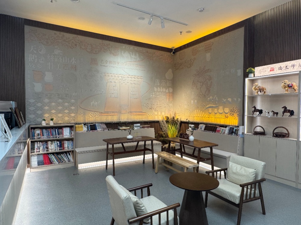 这处别具一格的“楼兰驿站”,是巴州文博院(博物馆)联合巴州图书馆于2025年5月1日在博物馆内设立的图书服务点,这里陈列着考古文博、历史文化、经典名著、旅游风光、少儿绘本等各类书籍,共计400余册。“打造这处休闲空间,是想让博物馆不仅是传承历史文化的纽带,也能成为让游客静享阅读时光的休闲区。”巴州博物馆交流推广科干部吴淑娟介绍。