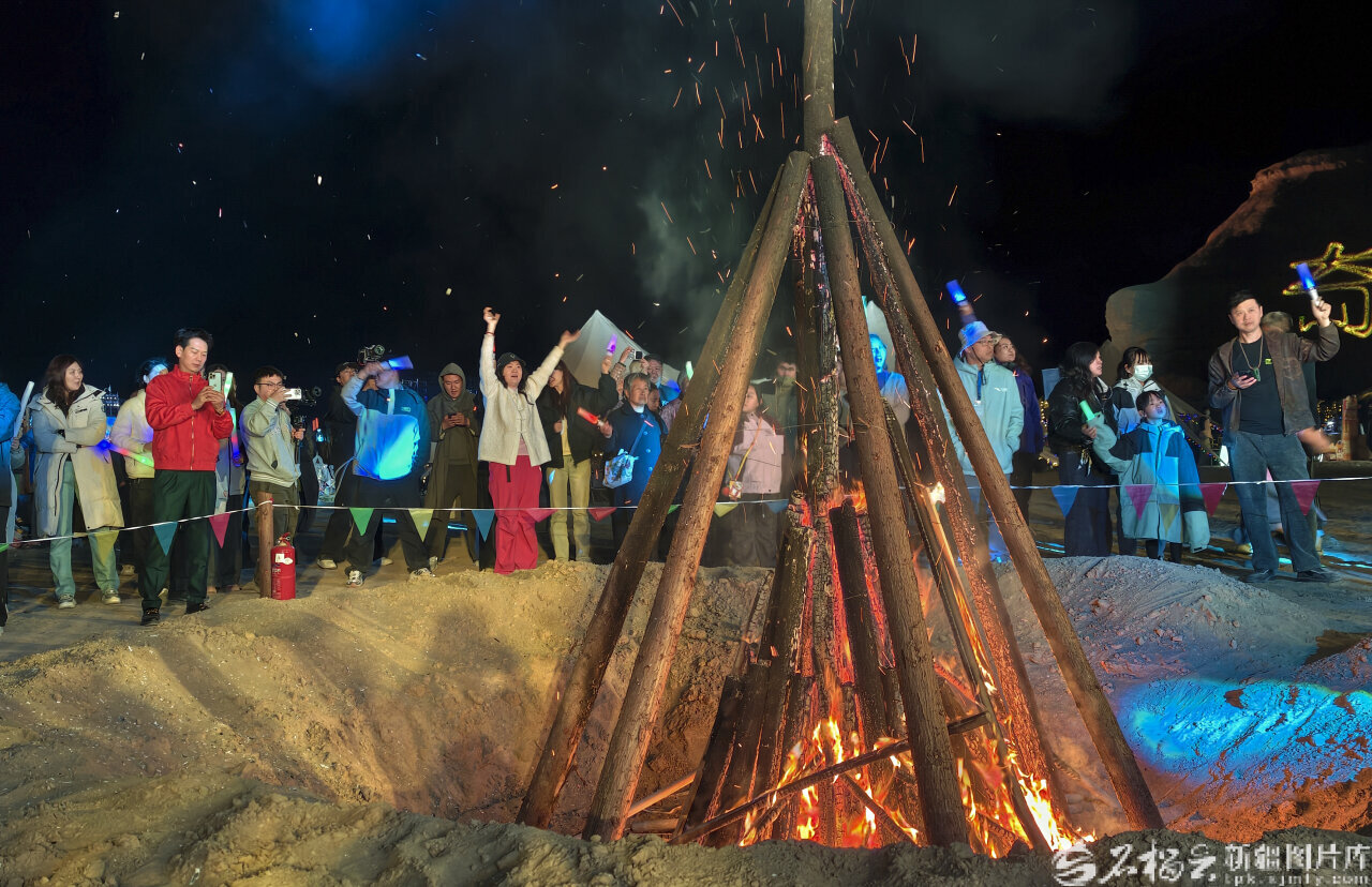 夜幕降临,文旅氛围持续升温。落日余晖里,落日音乐会奏响乐章,潮流与经典曲目交织;热闹篝火演出开启,游客们在篝火旁欢歌互动,尽享荒野浪漫。