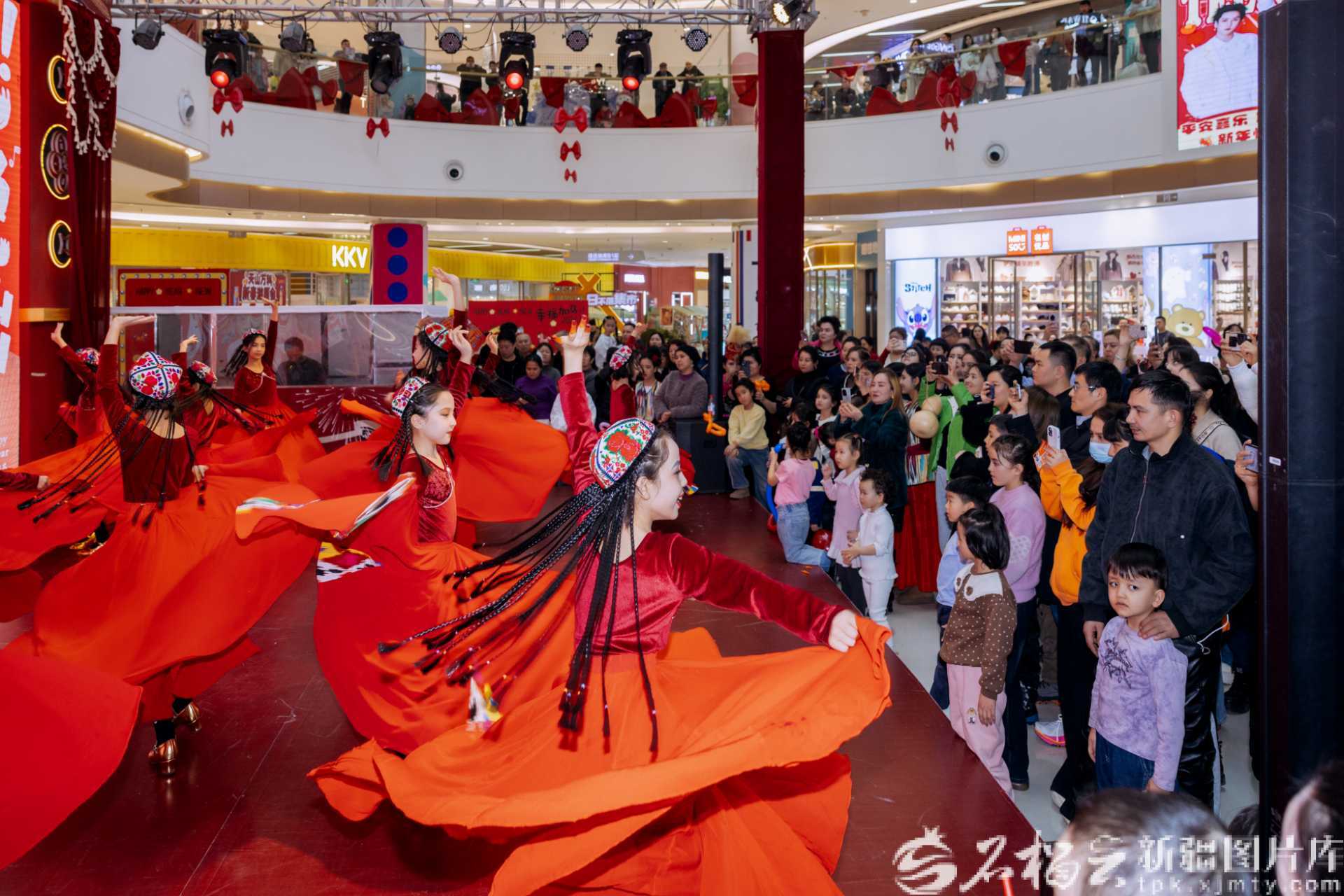 2月20日,在乌鲁木齐天山万科广场中庭,特色节目表演吸引消费者驻足观看。资料图
