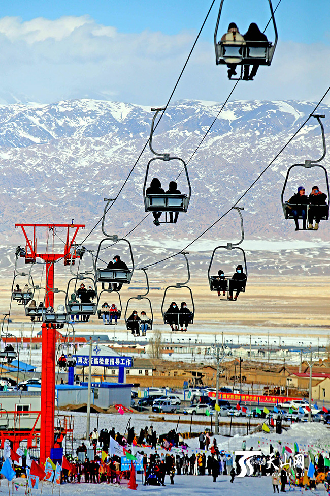 2月3日,游客在哈密市松树塘滑雪场乘坐缆车准备滑雪。随着北京冬奥会的临近,哈密市冰雪运动不断升温,各族群众参与冰雪运动的热情持续高涨,当地丰富的冰雪资源吸引了众多游客前来滑雪,欢度春节,喜迎冬奥。天山网/新疆日报记者蔡增乐摄