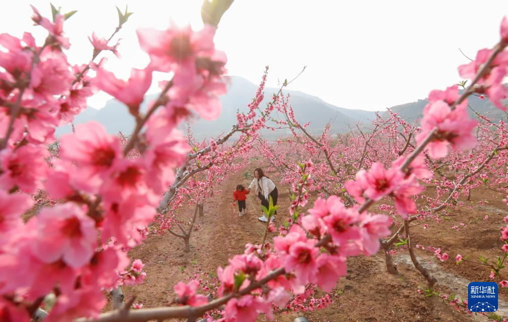 4月15日,游客在河北省遵化市党峪镇下马家峪村桃树园赏花游玩。新华社发(刘满仓摄)