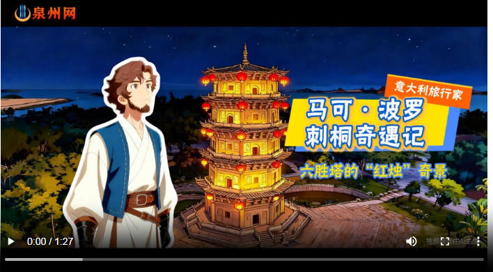 700多年前,意大利旅行家马可・波罗来到泉州,见证了“东方第一大港”的繁荣盛景。由泉州网出品的AI视频故事《马可・波罗刺桐奇遇记》,根据历史与传说,进行趣味化的故事创作,并通过人工智能技术制作生成系列小视频,以马可・波罗的视角,串联、展现宋元时期刺桐城“涨海声中万国商”“市井十洲人”等社会风貌。(视频:张凌波 文字:洪荣堆)
