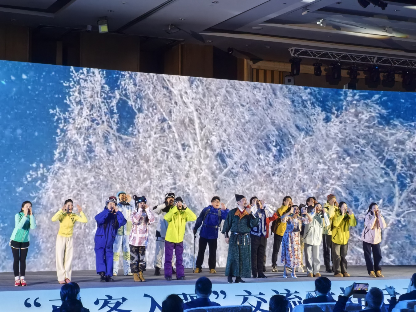 在新疆冰雪资源的推介环节中,自治区文化和旅游厅创新形式,用岑参“千树万树梨花开”的“诗境冰雪”为新疆的冰雪文化提质升级。(李卫疆摄)