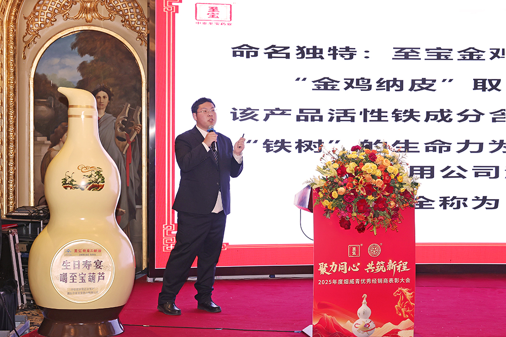 “近年来,在宏观经济承压的背景下,中亚至宝药业连续五年实现逆势增长,销售收入和净利润均保持两位数增幅。取得这样的成绩,除了感谢消费者信赖、伙伴支持与社会关爱外,也源于我们自身的七大优势,即深厚的文化底蕴、优质的产品体系、明确的功能属性、国际化的市场认可、强大的品牌基础、合理的价格体系、共赢的渠道理念。”烟台中亚至宝药业有限公司董事长冷斌在致辞中表示,“展望未来,我们将坚持‘传承精华、守正创新’,持续做强中成药与保健酒两大产业,培育‘中亚’”‘至宝’双品牌,致力于成为有影响力的健康企业。我们的目标是:将至宝三鞭丸打造成中国滋补抗衰类中成药第一品牌;将国药准字号的至宝三鞭酒、三鞭补酒发展为滋补药酒领军品牌;将卫食健字号的至宝特质三鞭酒打造成融合动物、草本与海洋生物药材的保健酒第一品牌。”
