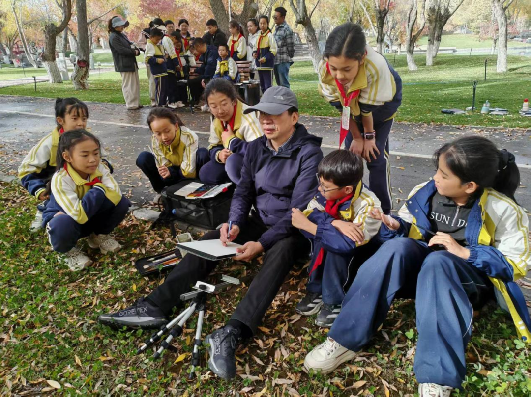 温州团队还带领获奖学生走出教室,走进自然,开展户外写生活动。“这是我第一次写生!”孩子们在老师的指导下,认真观察、专注勾勒,眼中闪烁着发现美的光芒。这次写生,不仅是一次技艺的启蒙,更是一次心灵的唤醒——让孩子们学会用眼睛捕捉自然之美,用画笔表达内心之情。